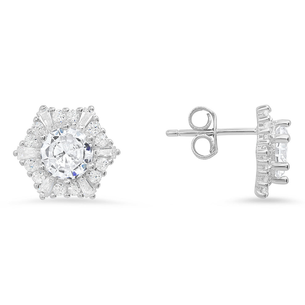 Make a statement with these geometrically captivating sterling silver hexagon halo stud earrings. Crafted from genuine sterling silver (stamped "925" for authenticity), these earrings showcase a unique and modern design that adds a touch of edgy elegance to any outfit.